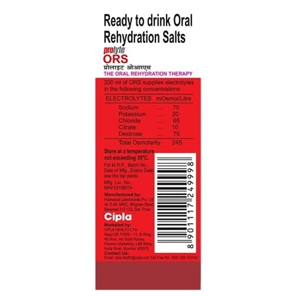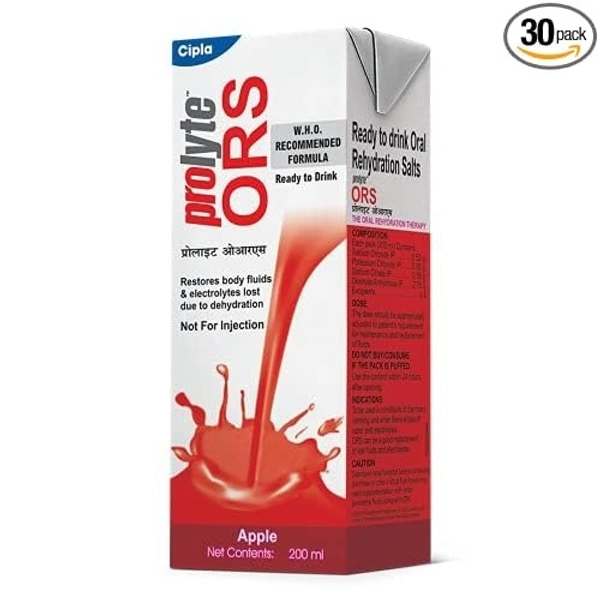 Cipla Prolyte Ors Ready To Drink Oral Rehydration Contains Vital Electrolytes | Restores Body Fluids & Electrolytes Lost Due To Sweating, Diarrhea & Vomiting | Who Formula Apple