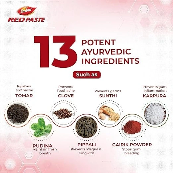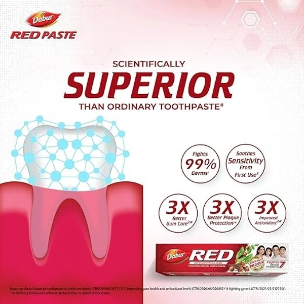 Dabur Red Toothpaste | World's No.1 Ayurvedic Paste | Provides Germ Protection, Cavity Protection, Plaque Removal | Prevents Gum Bleeding, Yellow Teeth, Toothache, Bad Breath