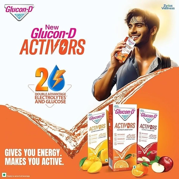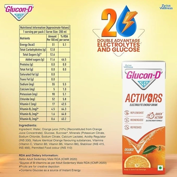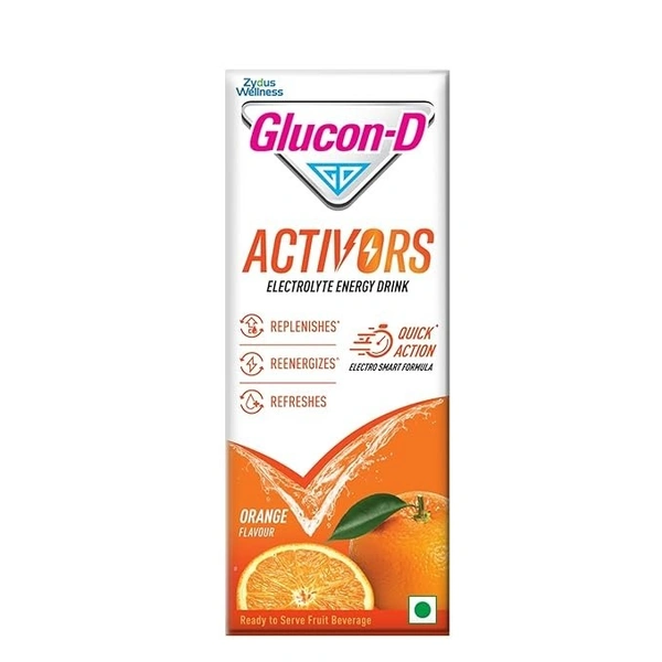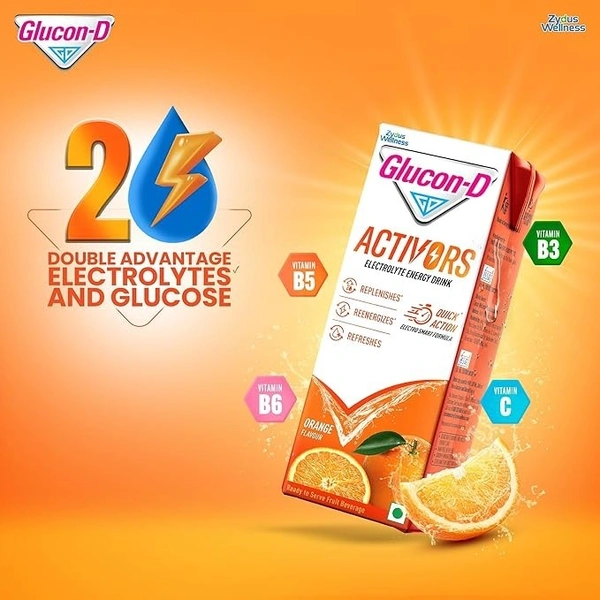 Glucon-D Activors, Electrolyte Energy Drink with Double Advantage of Electrolytes and Glucose, Orange Flavour | Provides Energy, Makes Active | Replenishes | Reenergizes | Refreshes | 200ml