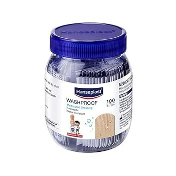 Hansaplast Antiseptic Washproof Bandage for injury & wounds | 100 Strips | First Aid | Water resistant | Provides Comfort to the Wound in Water | For Kids & Adults