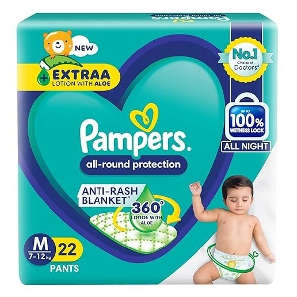 Pampers All round Protection Pants, Medium size baby diapers (MD) 22 Count, Anti Rash diapers, Lotion with Aloe Vera