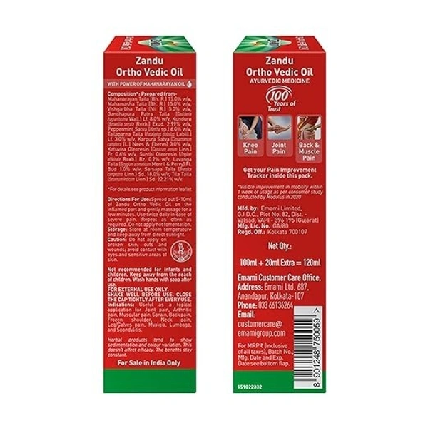 Zandu Ortho Vedic Oil - 120ml | Ayurvedic Oil for Relief from Knee and Joint Pain,Muscle Pain, Osteoarthritis Visible I